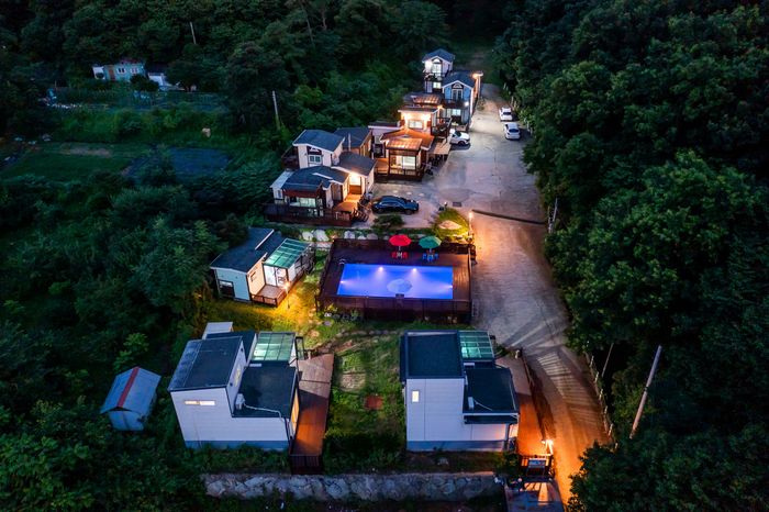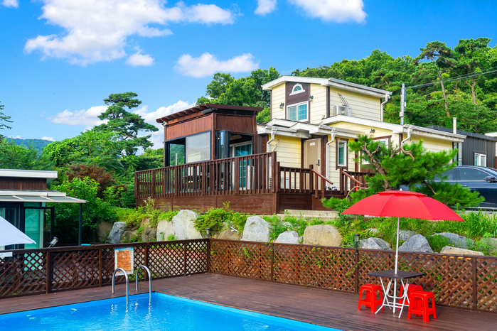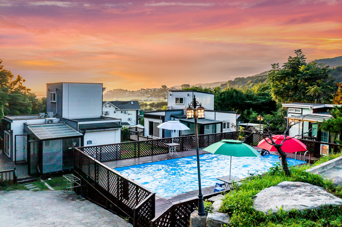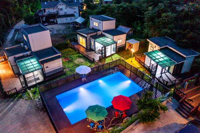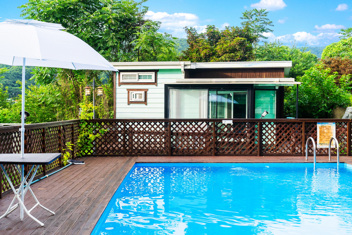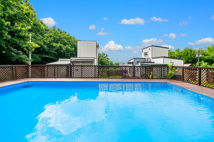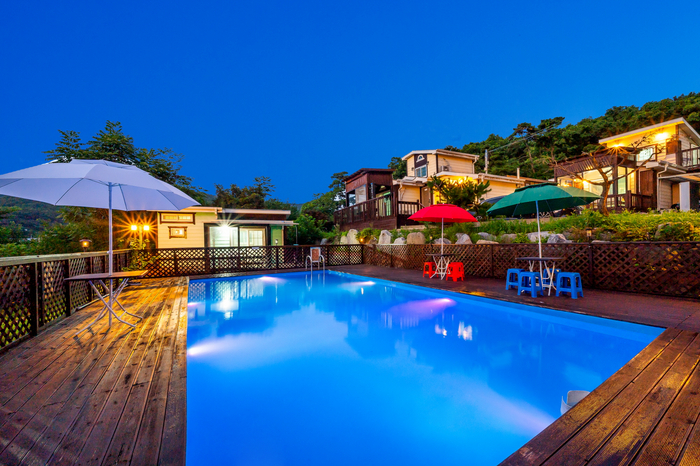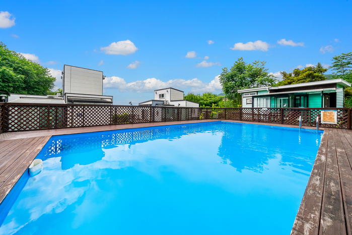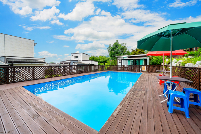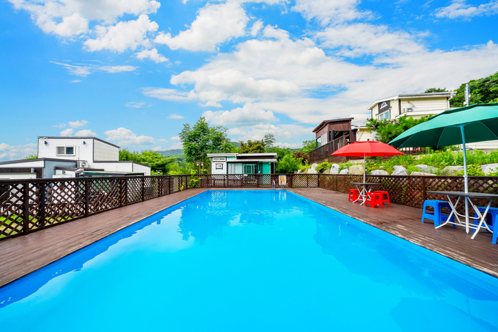 수영장은 입실 이후 이용 가능하며, 퇴실날 오전 10시까지만 이용 가능