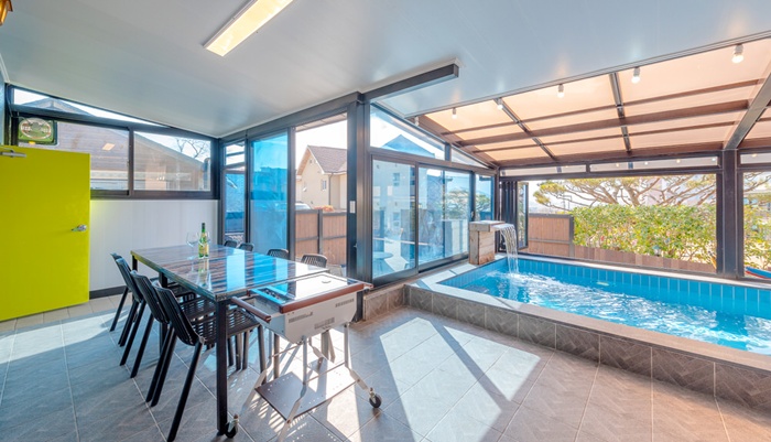 풀빌라 객실의 경우 (26도) 미온수로 운영되는 미온수 무료 이벤트 진행