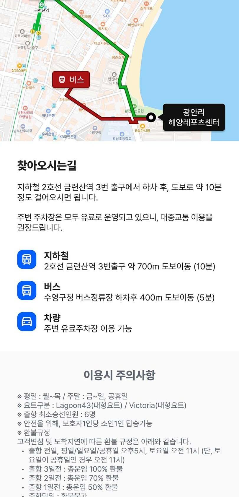 * 주차 : 수영장 요트경기장 내 무료 주차 가능