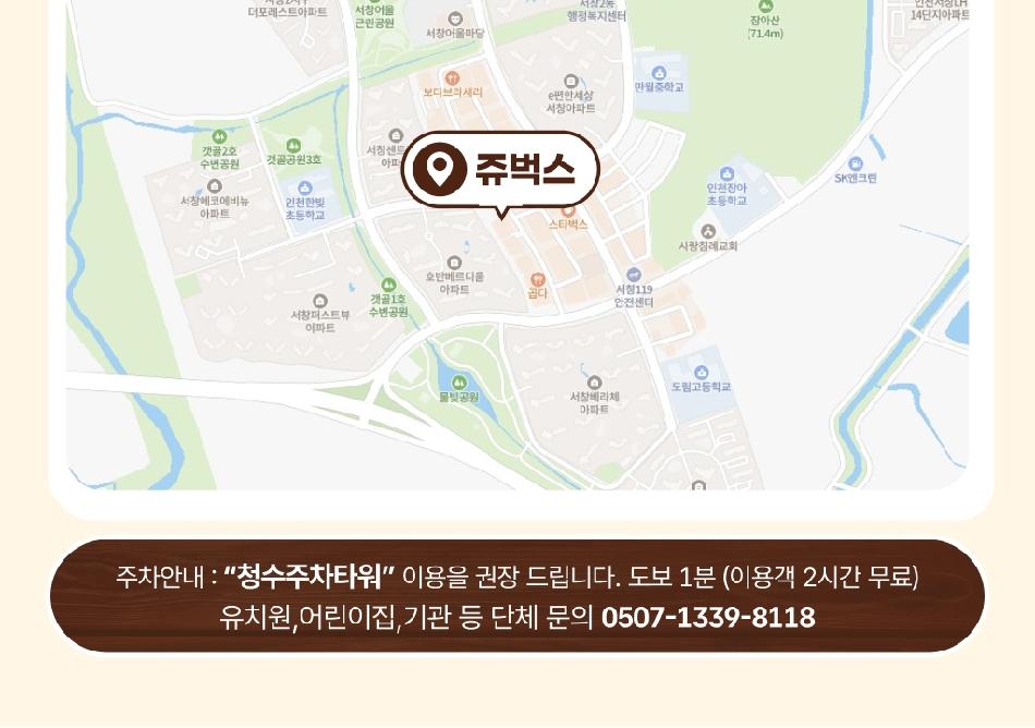 * 주차 : 건물 무료 주차 가능 / 인근 청수타워 주차장 이용시 최대 2시간 무료)