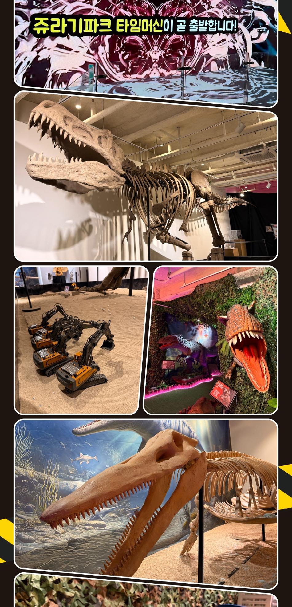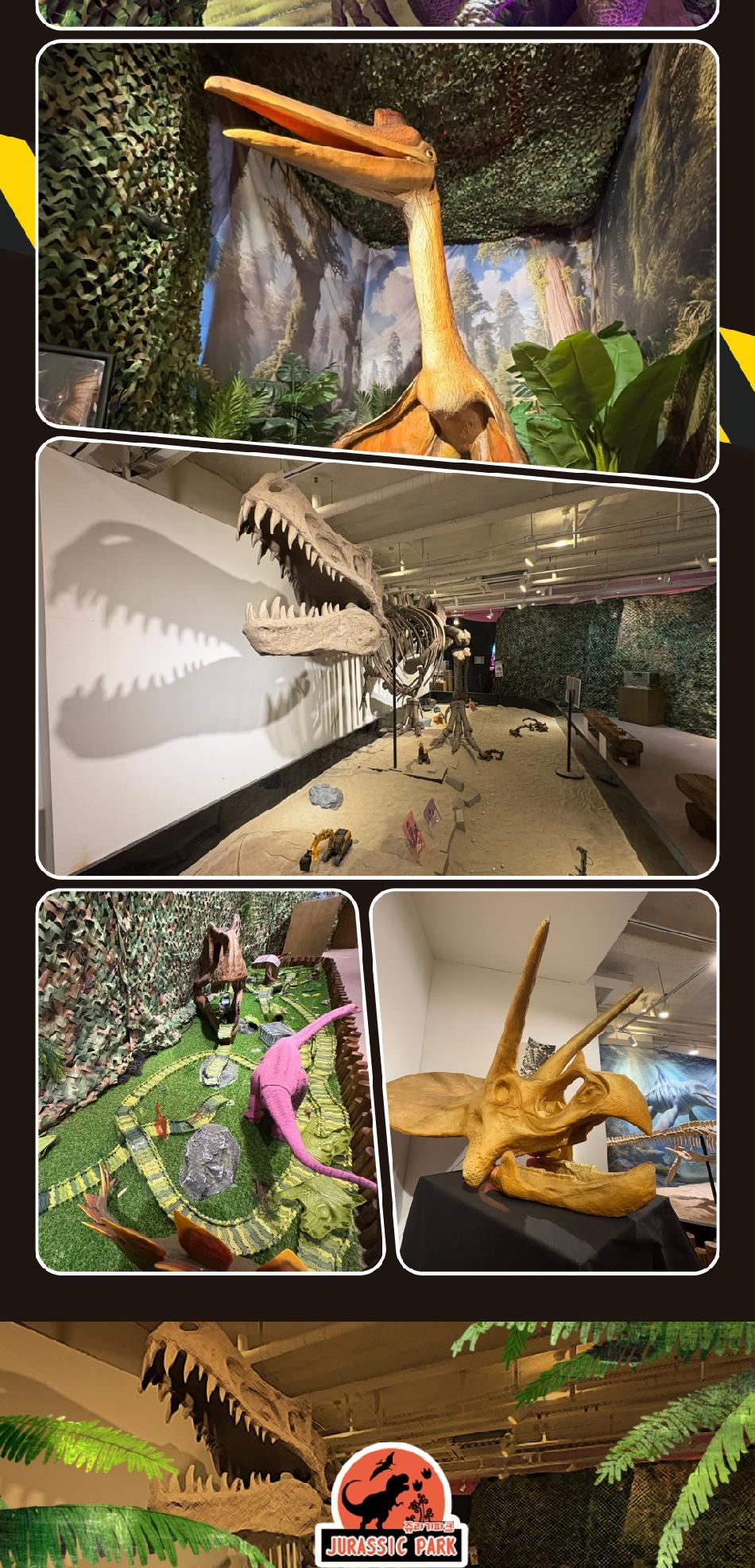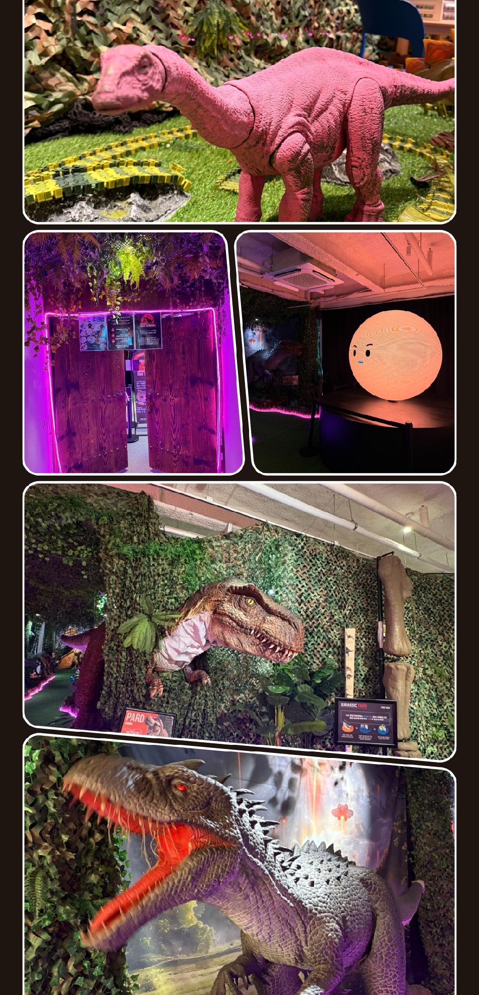 쥬라기파크 이용방법 * 1. 공룡 앞 QR코드로 간단한 미션 참여해보세요.! * 2. 내부에서 가족/단체사진 한 장 무료로 찍어드리고 퇴장 시 찾아가시면 됩니다. * 3. 포크레인 체험 시 공룡알 1팀당 1개 가져오면 선물드립니다. * 4. 몰입형 5D 관람 * 5. 재입장 불가 * 쥬라기파크 알차게 즐길수 있는 포인트 - [가족사진촬영+포크레인 알찾기+5D몰입형 상영]