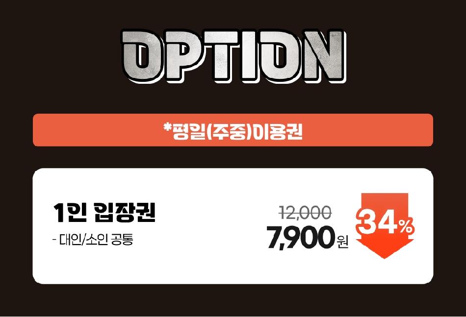 * 최소 방문 1시간 전 상품구매 (당일구매/당일사용 가능) * 현장 키오스크에서 바코드 조회 후 이용 가능