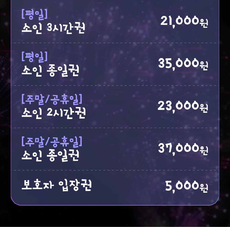 * 무료입장기준 : 12개월 이하 (증빙서류 지참 필수)