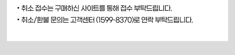 -단품만 구매시 예약일 날짜로 영업일 기준 +5일내 에만 취소 환불처리 가능합니다. (이외 경우는 연장 및 취소, 환불처리 불가)