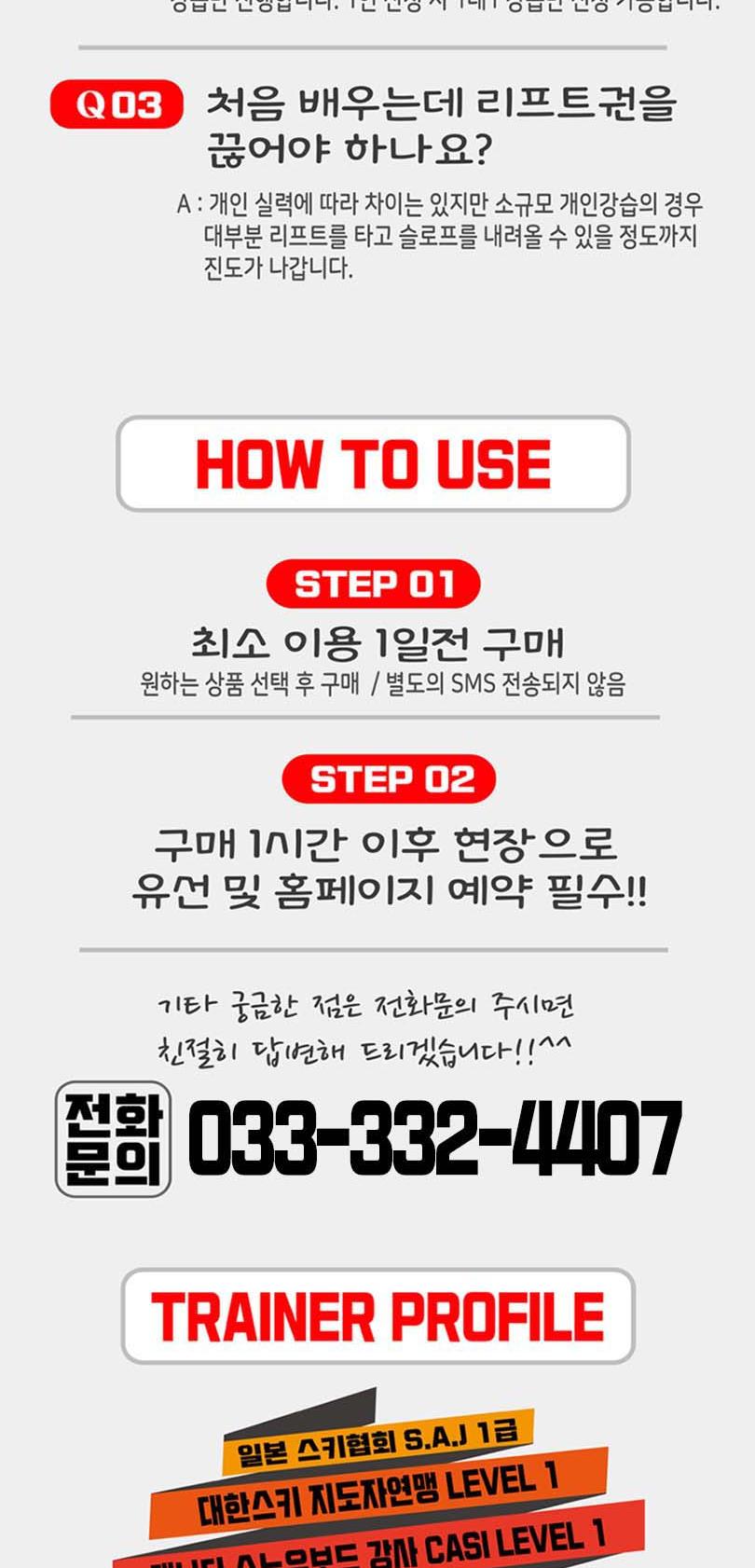 -단, 강습상품은 3일 전 전화예약 필수