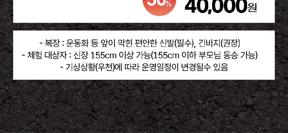 * ※ 기간 중 타임별 1인 1체험권 필수입니다. * ※ 구매 후 체험시작시간 15분 전 도착 부탁드립니다. * ※ 현장에서 구매자 성함으로 예약 확인 가능합니다.