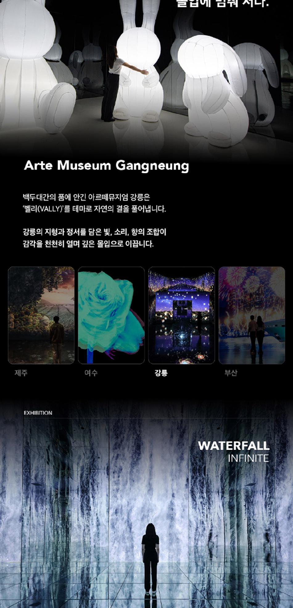 강릉 아르떼뮤지엄 관람 안내 * 본 티켓은 입장권이 제공되며, ARTE CAFE의 밀크티는 제공되지 않습니다. * 원활한 관람을 위해 현장 상황에 따라 입장 대기가 발생할 수 있습니다. * 입장 후에는 환불이 불가하며 퇴장 후 재입장 불가합니다. * 평일 이용 시 단체방문이 많은 관계로 혼잡할 수 있으며 방문에 참고 부탁드립니다.