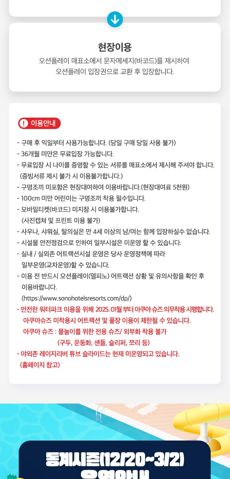 * 이용 전 반드시 오션플레이(델피노) 어트랙션 상황 및 유의사항을 확인 후 이용바랍니다.