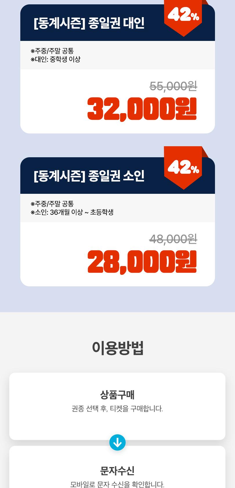 * ①티켓 구매 (이용일 전일 구매 필수 / 당일 구매 당일 사용 불가)