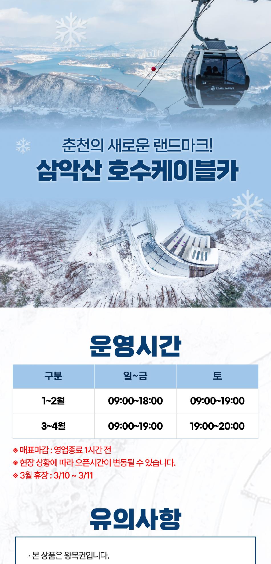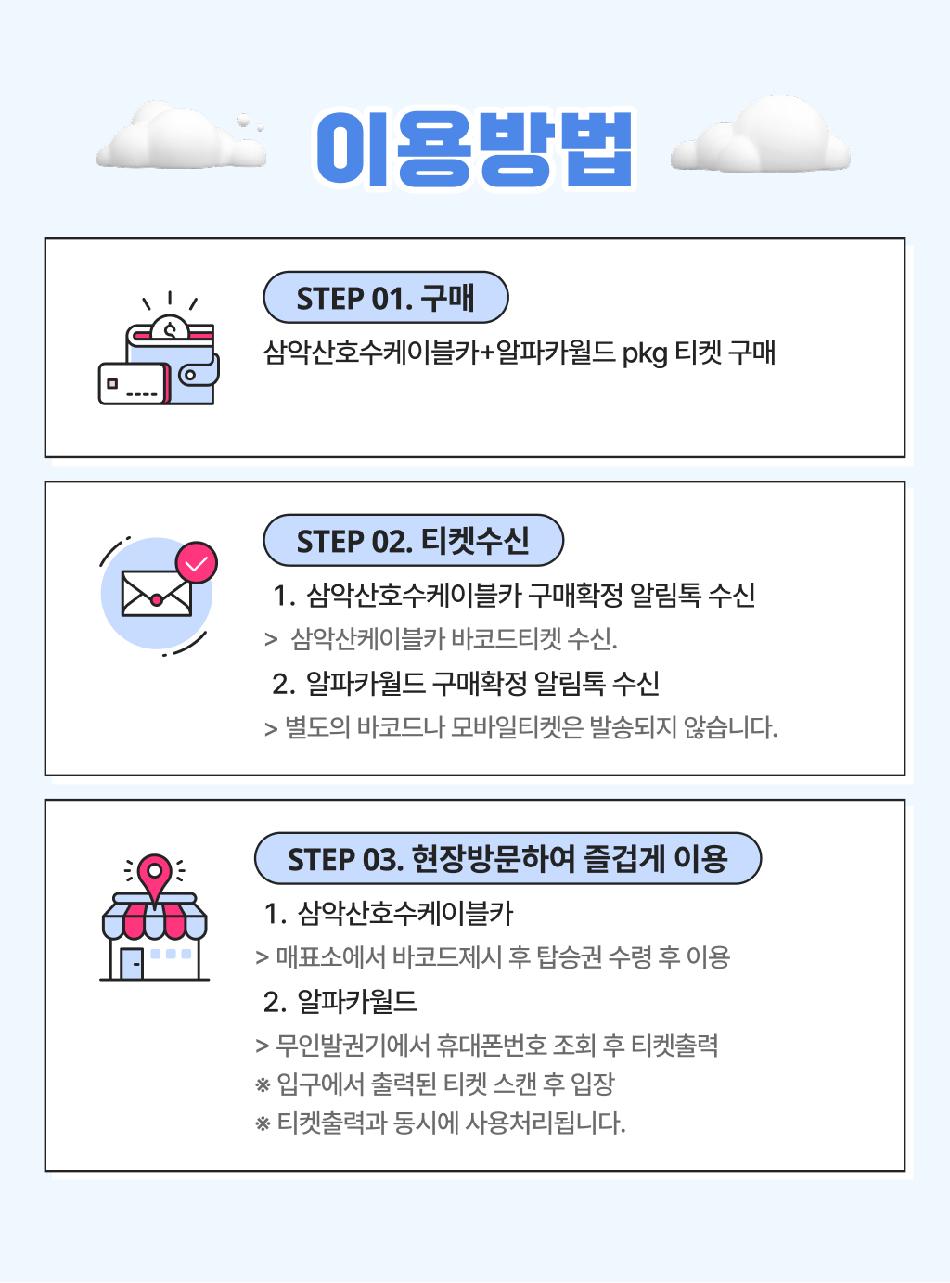 삼악산호수케이블카 * 1) 티켓구매 * 2) 삼악산케이블카 바코드티켓 수신 * 3) 매표소에서 바코드제시 후 탑승권 수령 후 이용