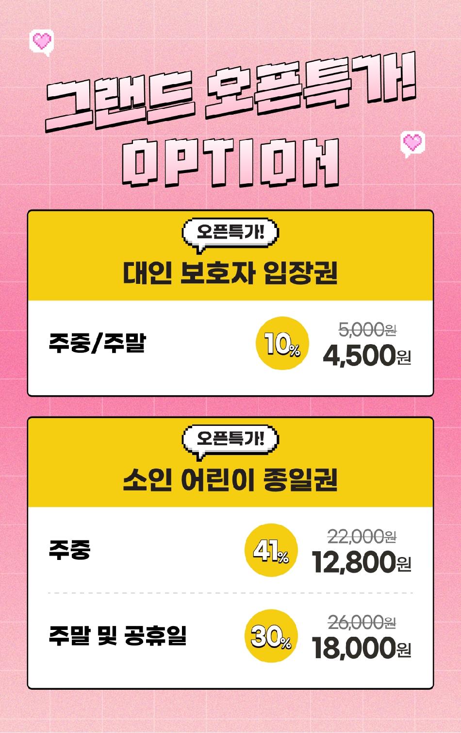 * ※ 당일구매/사용 가능하나 방문 2시간전 구매필수(2시간이 안된경우 입장에 제한이 있을수 있습니다) * ※ 현장결제후 온라인 티켓으로 변경 불가합니다.