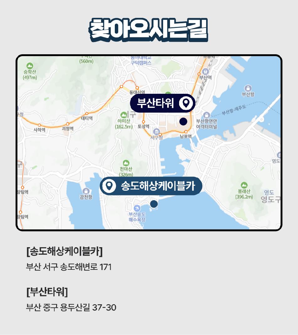 송도 케이블카 유의사항 * 국가유공자, 경로, 장애인은 현장에서 구매바랍니다. * 용궁구름다리 유료입장 전환 : 입장료 1,000원(7세 미만 무료입장, 단체 20%할인) * 편도상품은 현장에서만 구매가능합니다. * 탑승권에 기재된 탑승번호 순서대로 탑승합니다. * 구매 후 다른 상품으로 변경불가합니다. * 기타 할인정책과 중복할인은 불가합니다. * 1개의 캐빈에 최대 8명까지 탑승가능합니다. * 안전과 동승한 고객을 배려하여 캐빈 내 주류,음식,화약류,동물의 반입을 금지합니다. * 개인의 부주의로 인한 사고 및 소지품 분실에 대해서는 책임지지 않습니다.