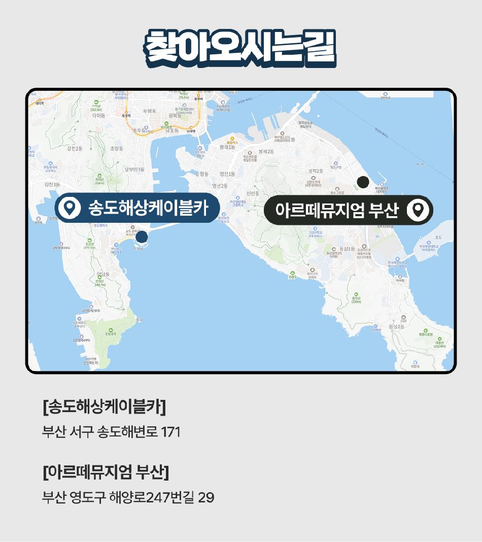 송도 케이블카 유의사항 * 국가유공자, 경로, 장애인은 현장에서 구매바랍니다. * 용궁구름다리 유료입장 전환 : 입장료 1,000원(7세 미만 무료입장, 단체 20%할인) * 편도상품은 현장에서만 구매가능합니다. * 탑승권에 기재된 탑승번호 순서대로 탑승합니다. * 구매 후 다른 상품으로 변경불가합니다. * 기타 할인정책과 중복할인은 불가합니다. * 1개의 캐빈에 최대 8명까지 탑승가능합니다. * 안전과 동승한 고객을 배려하여 캐빈 내 주류,음식,화약류,동물의 반입을 금지합니다. * 개인의 부주의로 인한 사고 및 소지품 분실에 대해서는 책임지지 않습니다.