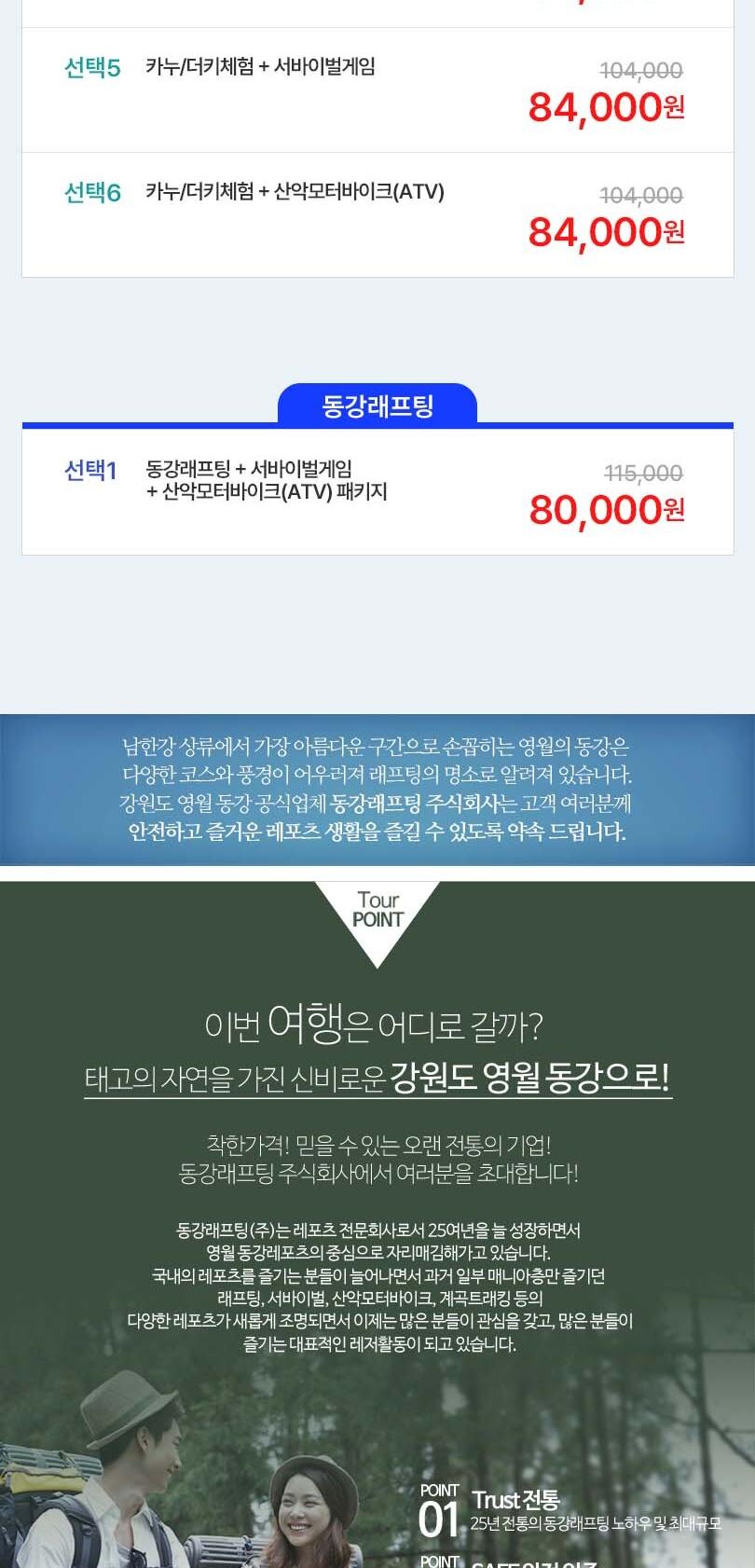 * 래프팅코스는 동강어라연코스 기준이며, 탑승인원은 최대 10~12명입니다.
