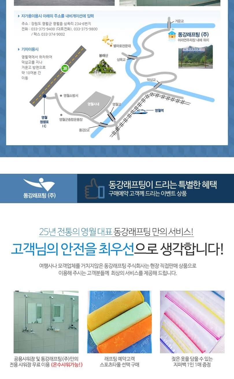 * 동강래프팅(주) 만의 전용샤워장 무료이용가능 (일부 온수샤워)