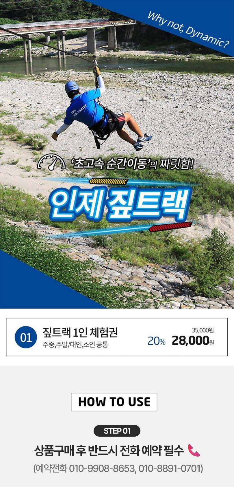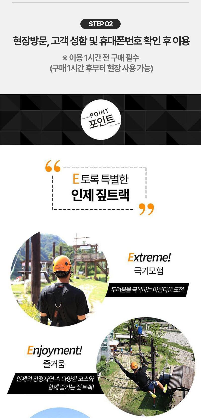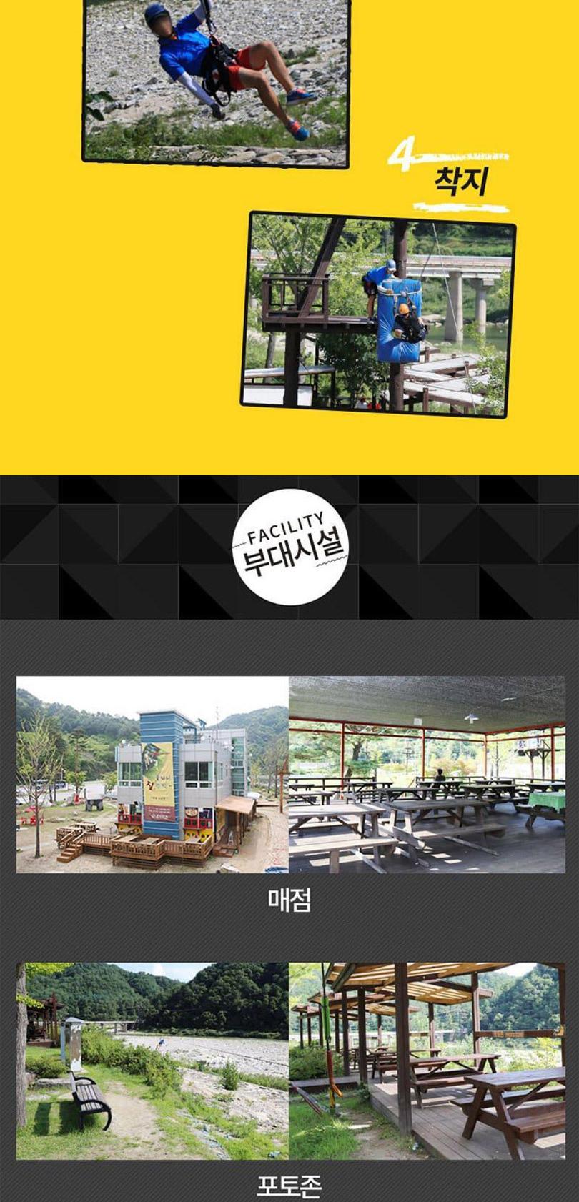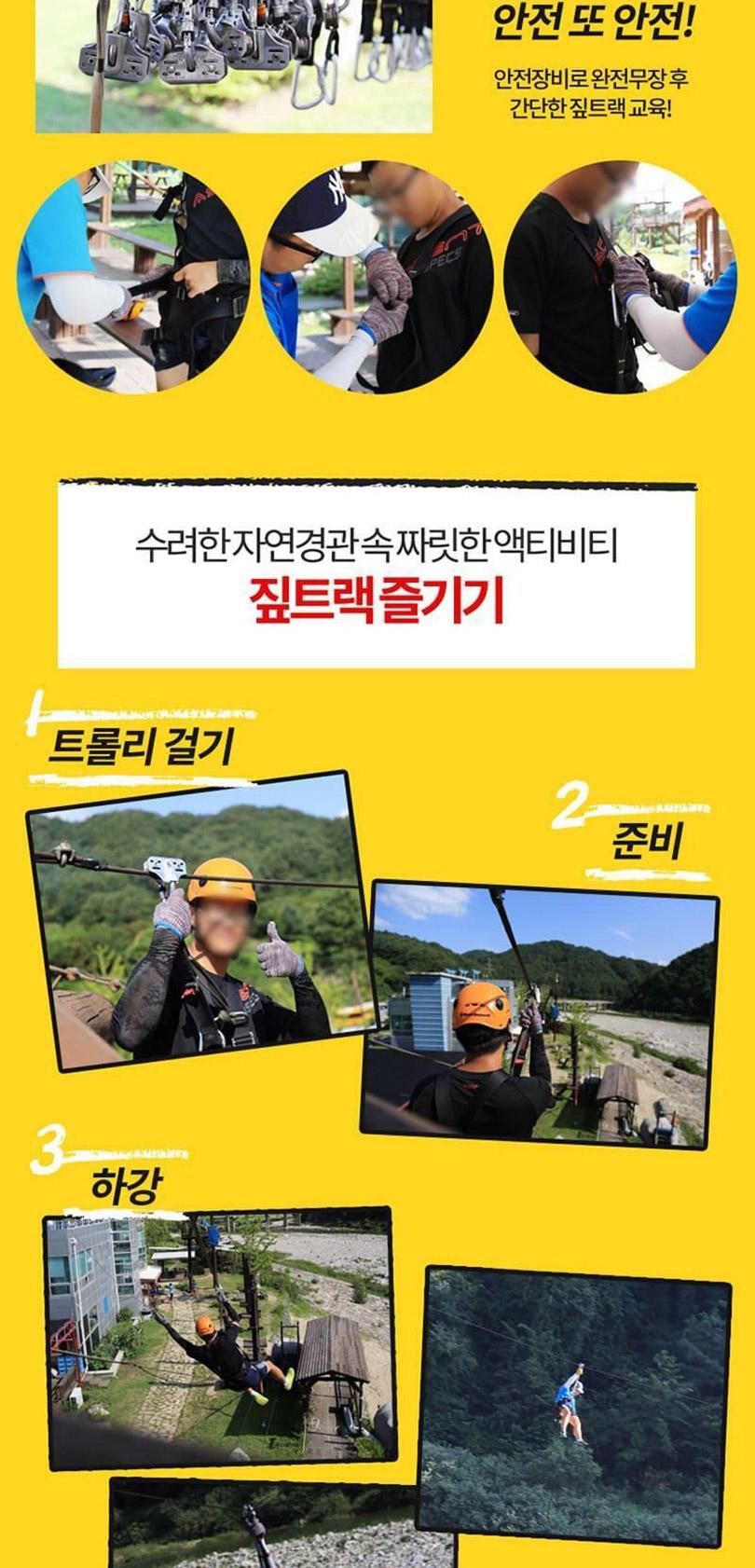 *상품구매 후 반드시 전화예약 진행해주시기 바랍니다. -(예약전화 033-462-0701,010-9908-8653) *안전한 탑승을 위하여 탑승복장 규칙을 지켜주십시오 *머리가 긴 고객은 머리를 묶어주십시오. *슬리퍼,하이힐은 착용 불가능합니다. *치마는 착용 불가입니다. *안전모,장갑을 착용해주세요. *안전벨트(트롤리,하네스)를 착용해주세요. *키 130cm미만,몸무게 30kg이하 또는 130kg 이상이신 분은 이용하실 수 없습니다. *임산부, 심신허약자, 심.장.질환자, 근골격계 (허리,목 디스크)에 이상이 있으신분은 이용하실 수 없습니다. *음주 또는 탑승의 안전에 이상이 있는 분은 탑승제한대상입니다. *기상여건에 따라 탑승시간은 조정될 수 있습니다.
