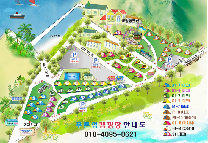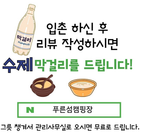추가 주의사항은 푸른섬캠핑장 홈페이지 열람 및 문의필수