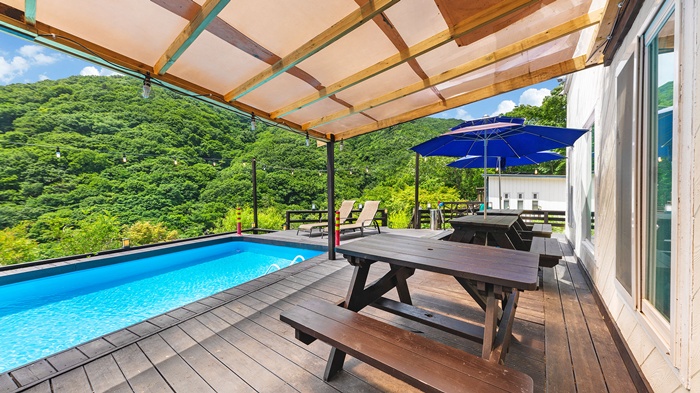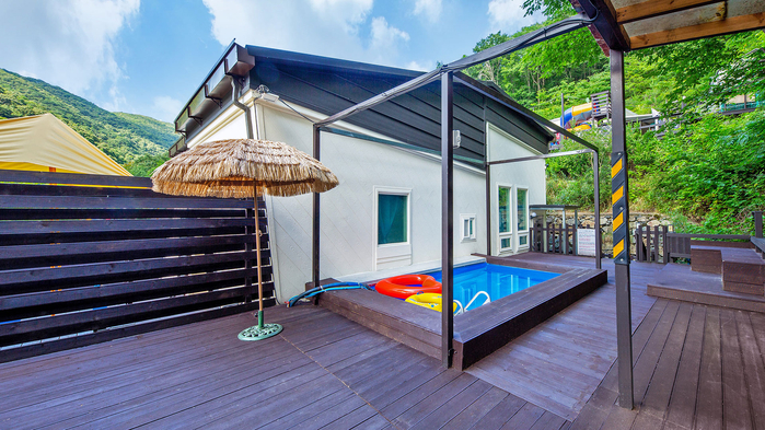 풀빌라 객실 단독수영장 365 일 이용 가능 (미온수 유료, 냉수 무료)