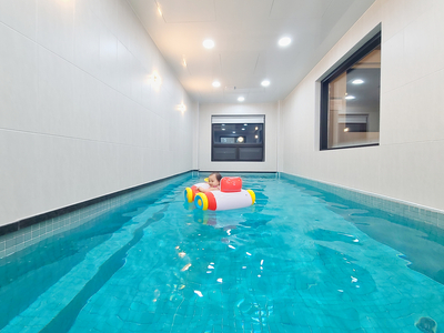 2) 온수 및 미온수는 태안실내 개인풀 최대 크기 자랑하는 7.5m 리얼대형으로서 100% 수돗물로 운용